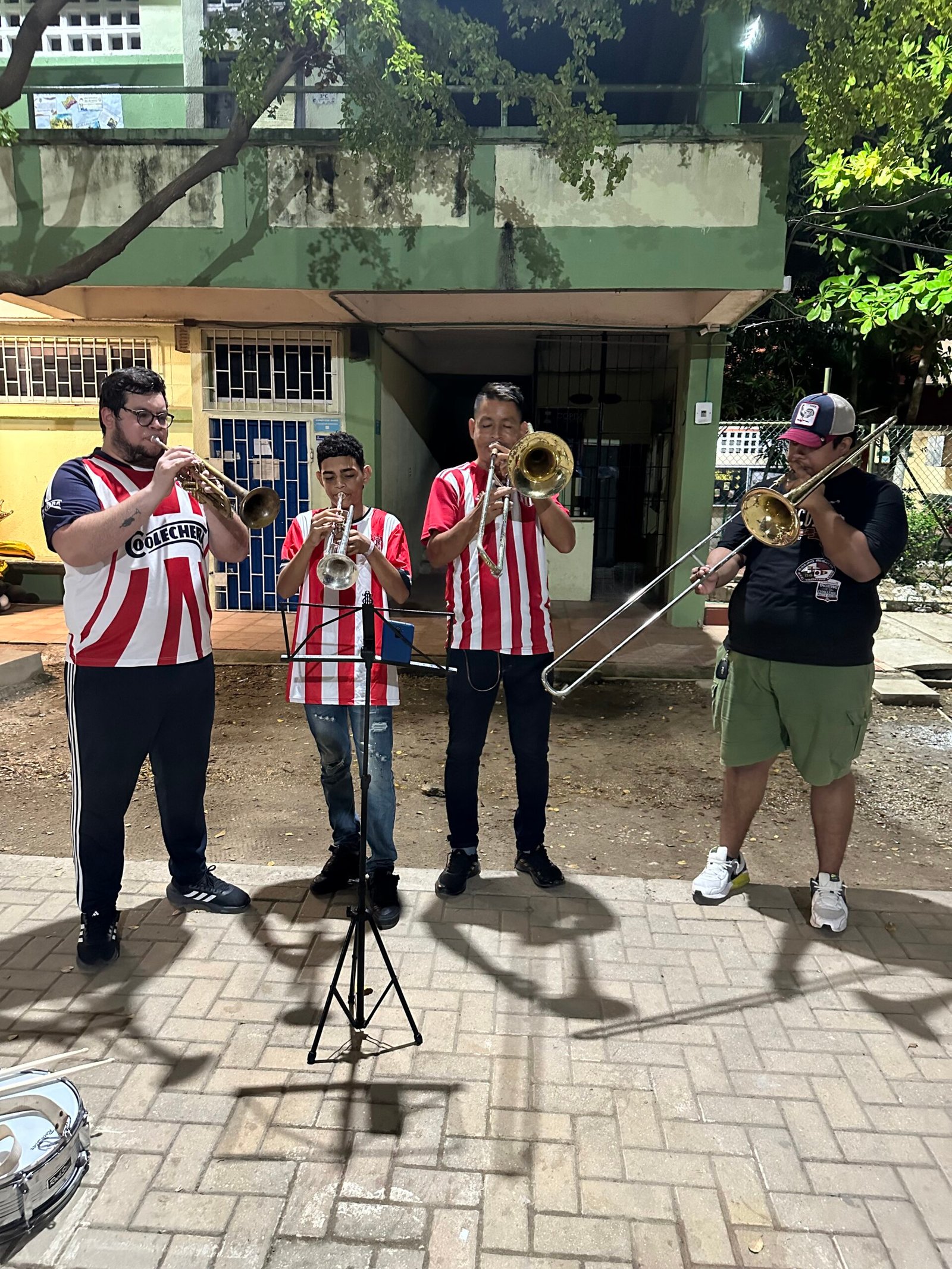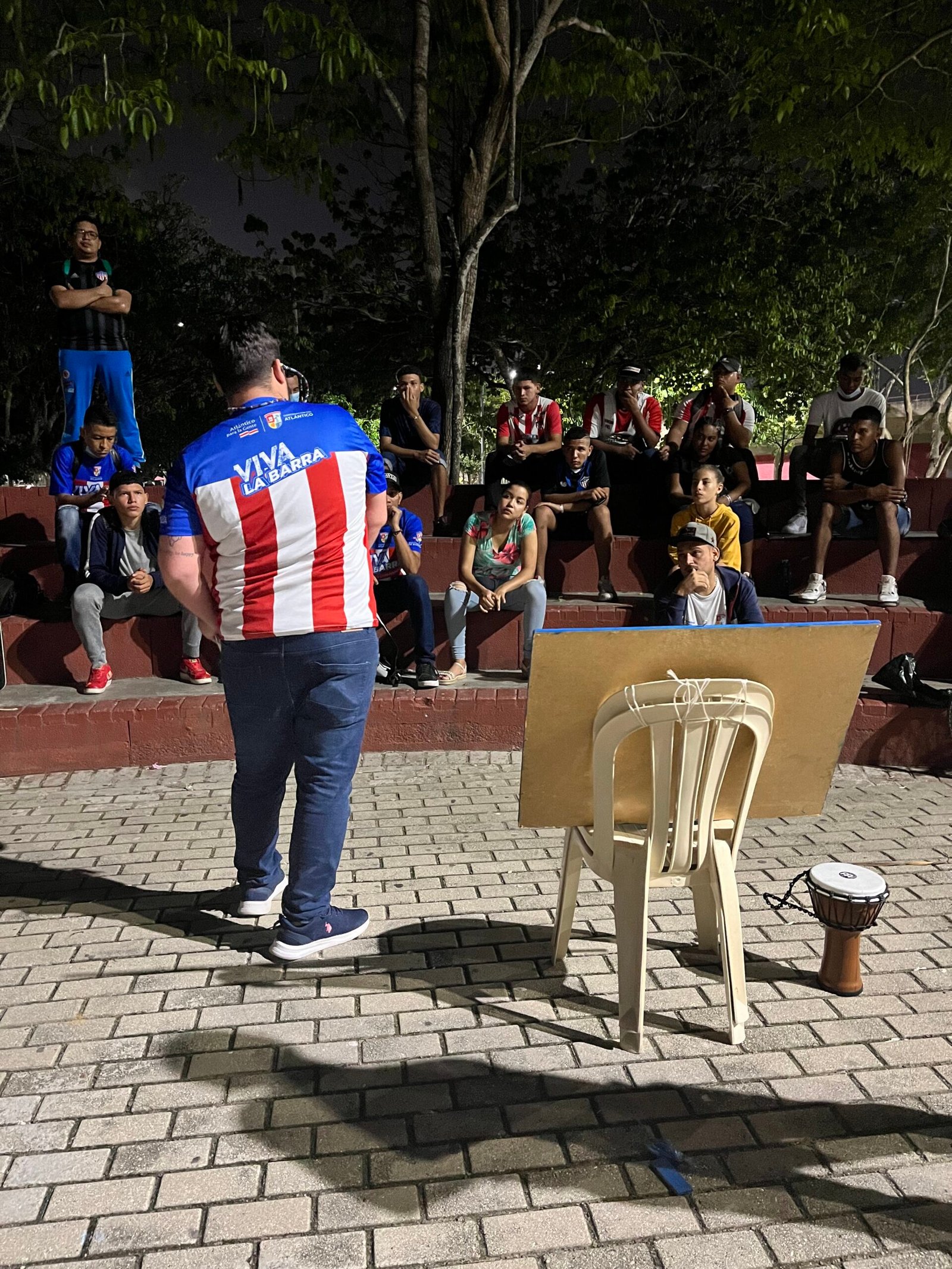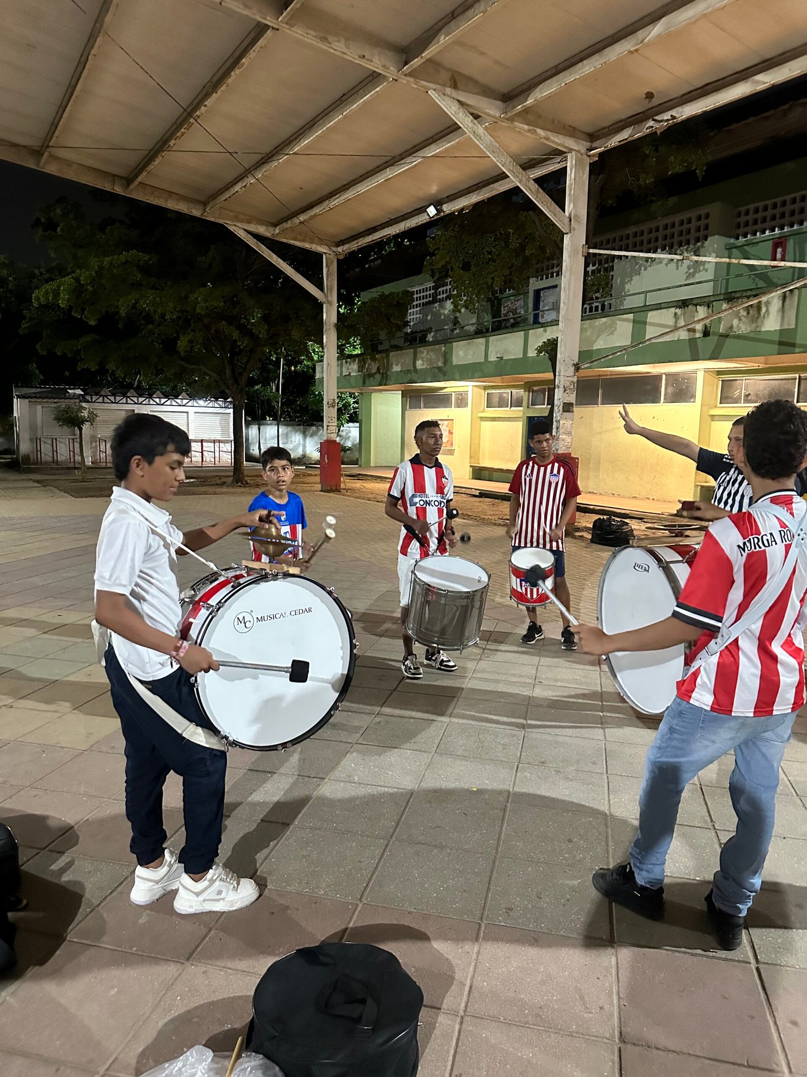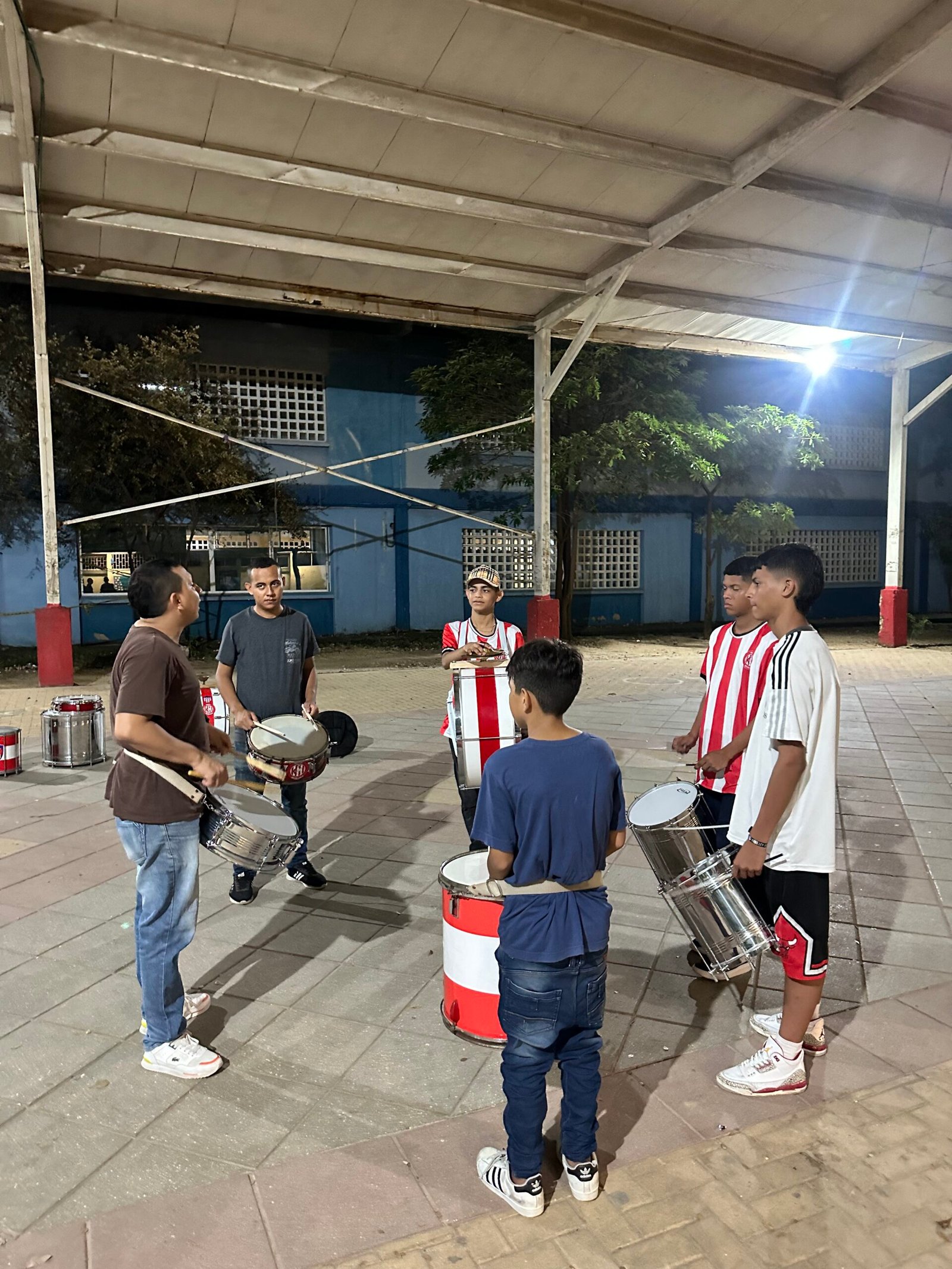 Nuestro proyecto “Música y Convivencia” ha demostrado que las notas pueden ser puentes y los ritmos, la clave para la armonía social. Descubre cómo la música ha cambiado la vida de los barristas del Frente Rojiblanco Sur , transformando conflictos en oportunidades y diferencias en lazos de hermandad”. Angelo y Sebastían.