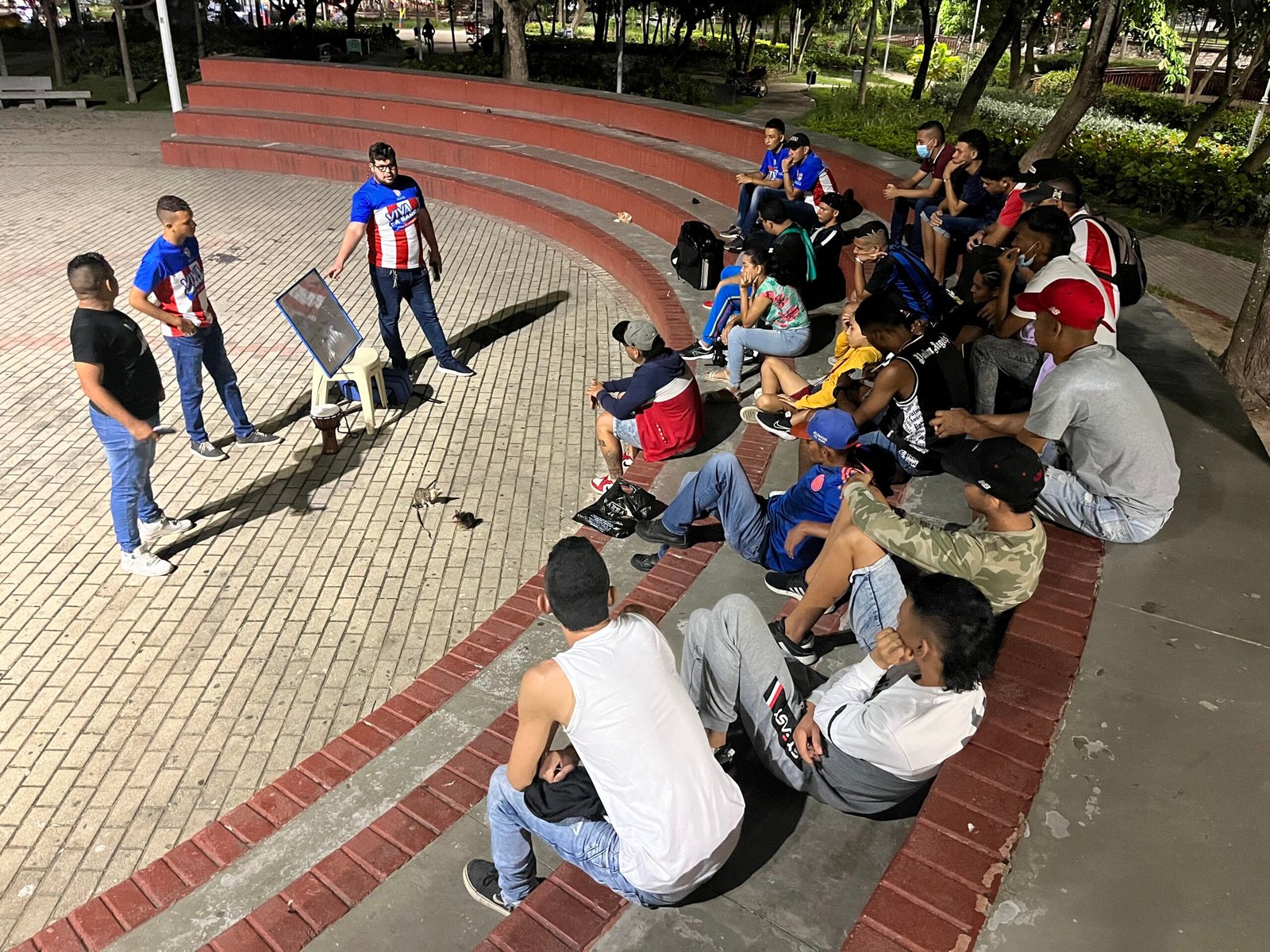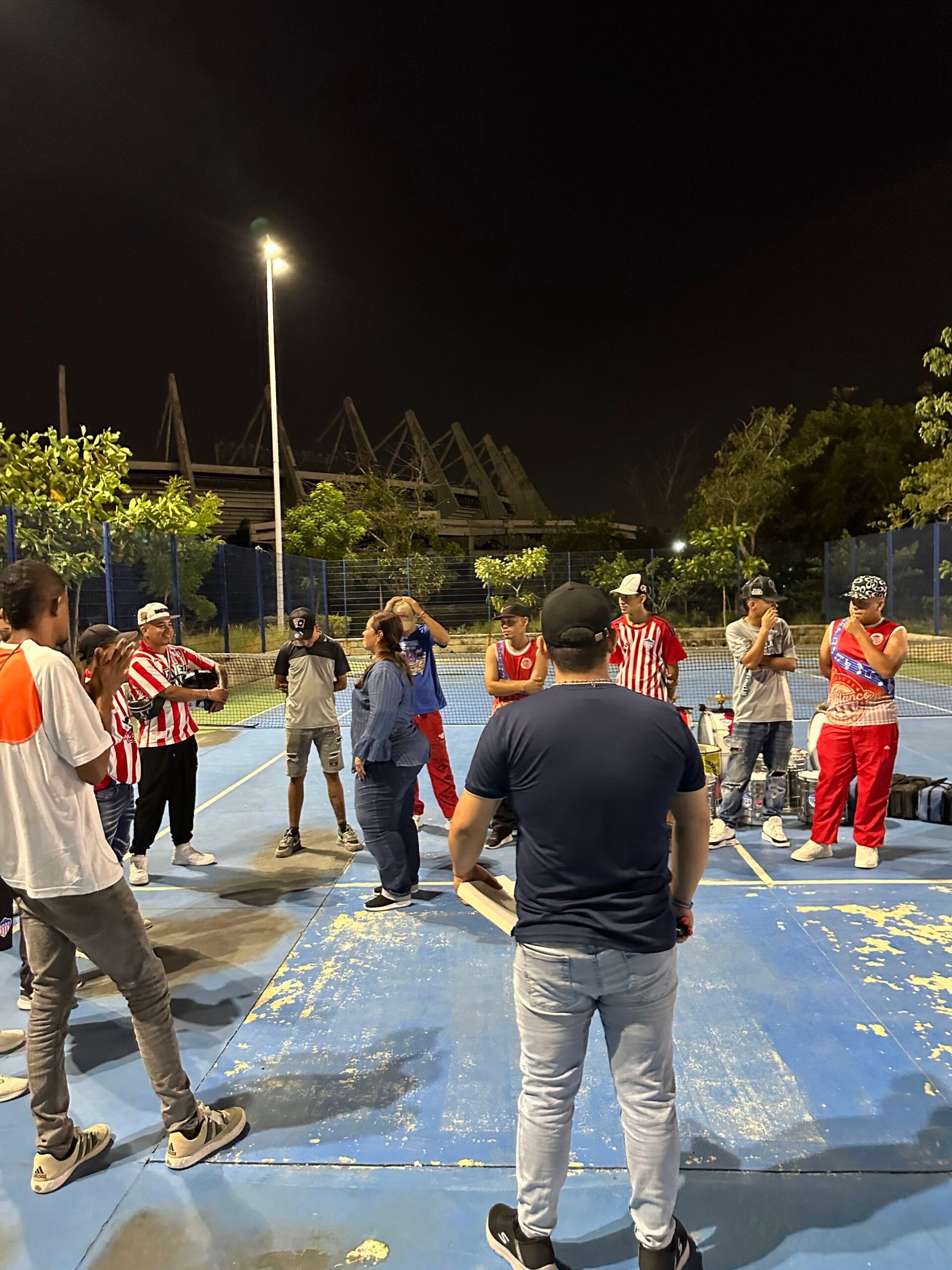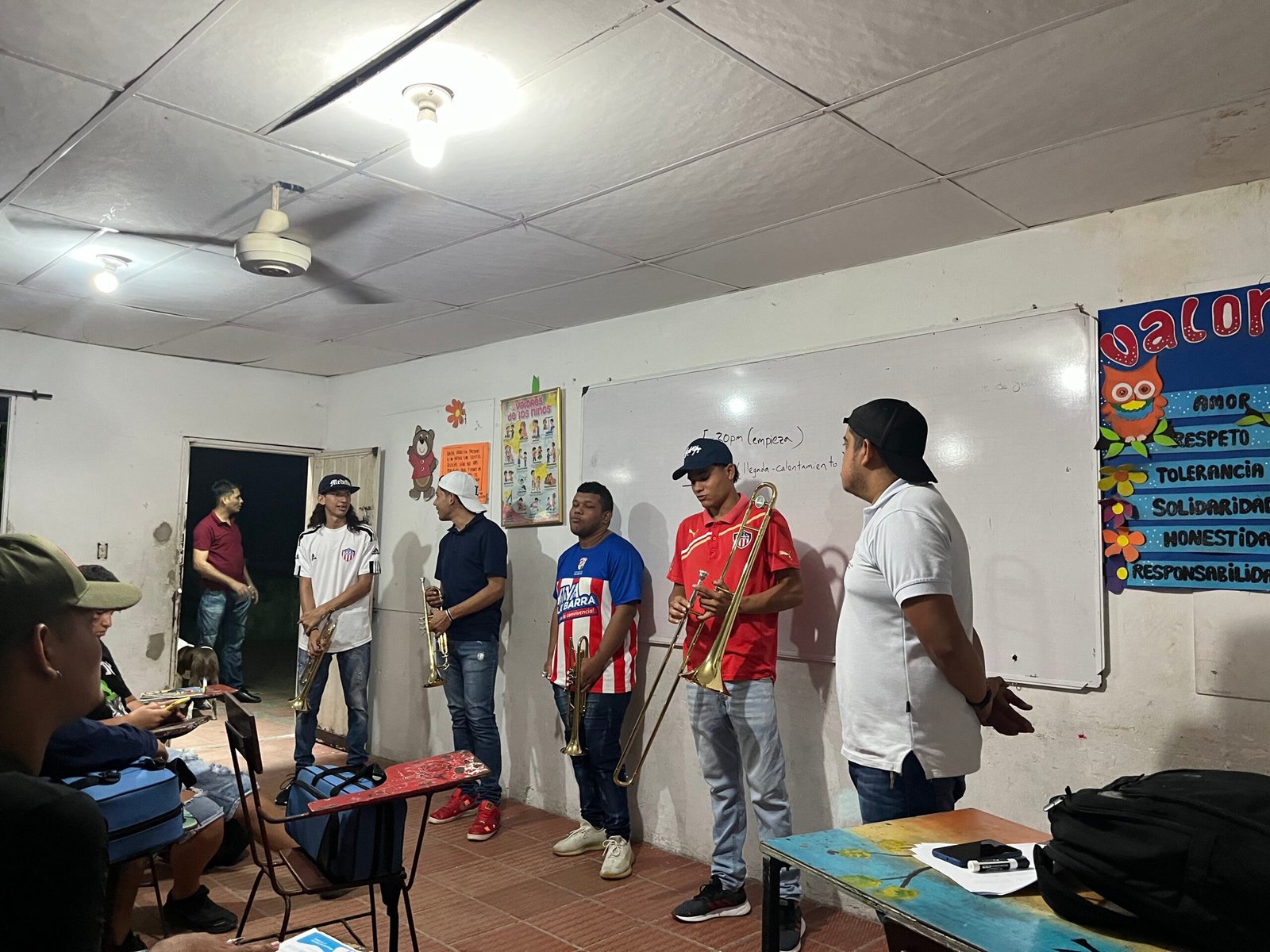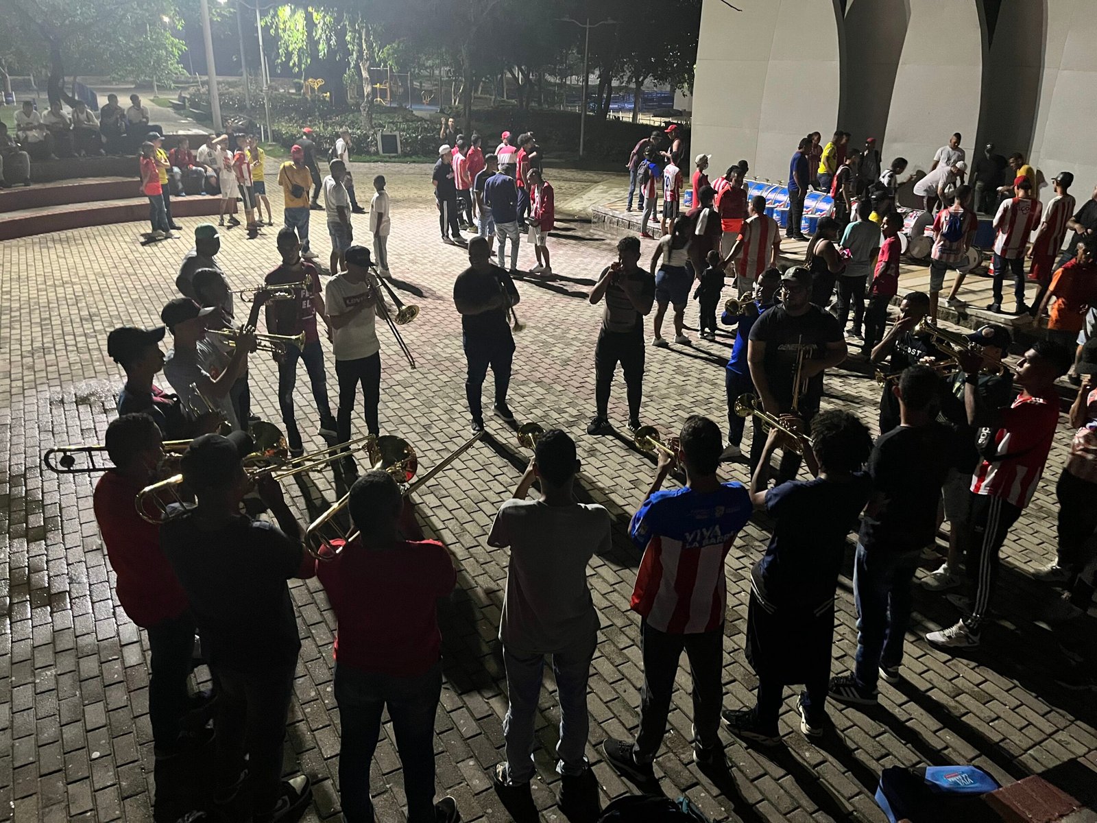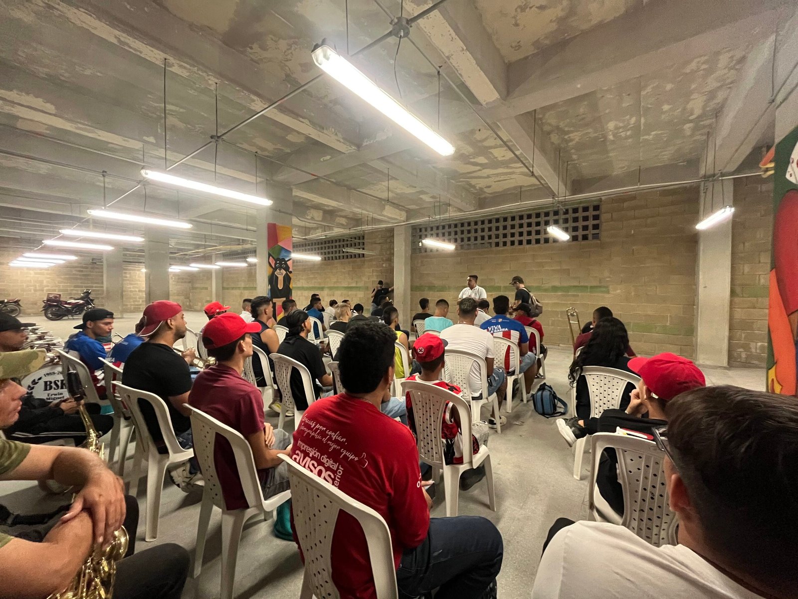 Nuestro proyecto “Música y Convivencia” ha demostrado que las notas pueden ser puentes y los ritmos, la clave para la armonía social. Descubre cómo la música ha cambiado la vida de los barristas del Frente Rojiblanco Sur , transformando conflictos en oportunidades y diferencias en lazos de hermandad”. Angelo y Sebastían.