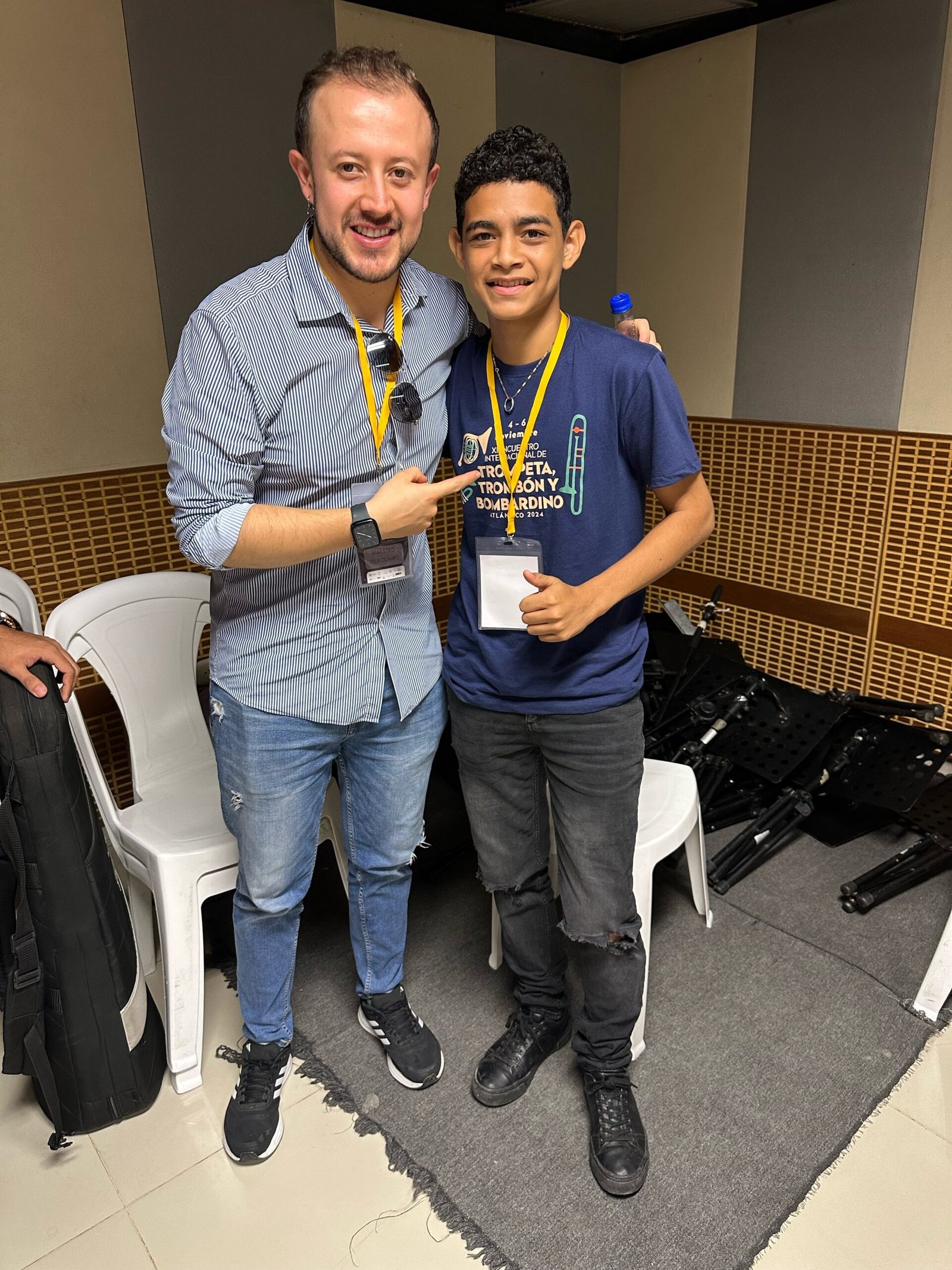 Músico Colombiano nacido en la Ciudad de Barranquilla del departamento del Atlántico radicado en el municipio de Puerto Colombia. Interprete del Trombón como instrumento principal e instrumentos tradicionales como la percusión folclórica entre otros, A sus 24 años de edad Sebastián Santiago es uno de los jóvenes talentosos de proyección de la Costa Caribe, su proceso formativo en el ámbito musical se gestó dentro de los procesos Artísticos y Culturales del municipio de Puerto Colombia (Atlántico). A los 12 años ingresó a la banda “Escuela Municipal de Puerto Colombia” como percusionista, donde se destacó y representó a su municipio en encuentros artísticos y musicales del país. A sus 14 años inicia su proceso de formación con el Trombón de Vara bajo la tutoría del Maestro Edwin Maturana Moreno dentro de este mismo proceso de la Escuela municipal, a sus 15 años realiza su primer viaje internacional representando a su país en la celebración de la independencia de Colombia en La Habana (Cuba), y 2 años más tarde representa nuevamente a su país en la fiesta “El Carnaval de Barranquilla en el Uruguay” (Ciudad de Montevideo, Uruguay). Posteriormente emprende su carrera musical de manera formal en el Programa de Licenciatura en Música de la Facultad de Bellas Artes adscrita a la Universidad del Atlántico y continua su proceso en lo que se refiere al aprendizaje y fortalecimiento del Trombón, con el Maestro Eucaris Jordan Guerra docente del área de Trombón, Bombardino y Tuba de esta institución. Durante su carrera profesional, ha tenido la oportunidad de adelantar estudios y capacitaciones en espacios académicos musicales con reconocidos maestros en el ámbito internacional como lo son el Italiano Vincenzo Paratore, el Francés Jacques Mauger, el Español Alejandro biot, los brasileños Rafael Rocha y Marcos Flavio, los venezolanos Miguel Sánchez y Pedro Carrero, los argentinos Pablo Fenoglio, Carlos Ovejero y Enrique Schneebeli, Jason Hausback, Deb Scot y Paul Comtop (EE, UU), Lito Fontana, entre otros. En su trayectoria como trombonista profesional el joven Sebastián ha recibido reconocimientos y logros como ganador del Congo de Oro en categoría salsa del festival de orquestas de Barranquilla en el año 2019 con la Orquesta de salsa A 4 VARAS SIN FRONTERAS. Así mismo ha participado en diversos proyectos musicales nacionales e internacionales dentro de los cuales se pueden resaltar la Orquesta de Juan Carlos Coronel, Tito Nieves, Alfredo de la Fe y Sus Estrellas, La Familia André, Michel El Buenón, Kinito Méndez, Chelito De Castro, Las Chicas del Can Tour Colombia, Álvaro Ricardo y su orquesta, A 4 Varas Sin Fronteras, entre otros. En los años 2023 y 2024 Realizó dos importantes giras en el continente europeo en los países de Francia y España con el grupo y semillero de investigación “Trombones del Caribe” en dónde estuvieron en diferentes ciudades, conservatorios y escenarios importantes llevando las músicas del Caribe Colombiano en nombre de la Universidad del Atlántico y Nuestro amado país Colombia. En la actualidad es trombonista de la orquesta del reconocido percusionista, compositor y arreglista Ricardo Ojeda “La Nómina del Pin” y también se encuentra cursando su último semestre de su carrera profesional de Licenciatura en Música de la universidad del atlántico.